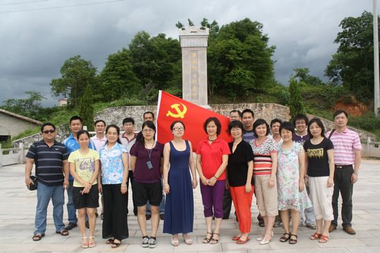 为了隆重庆祝建党90周年,重温党的光辉历程,进一步深入开展创先争优活动和“以德为行,以德为上”主题教育活动,根据广东省委教育工委《关于庆祝建党90周年开展“南粤校园党旗红”系列活动的通知》精神,6月23日,教育技术与传播学院教工党支部与院工会党支部组织全体教工党员瞻仰了广东人民抗日游击队东江纵队旺村革命烈士纪念碑,列队向革命先烈鞠躬致哀。教育技术与传播学院教工党支部和工会党支部还进行了重温入党誓词活动。