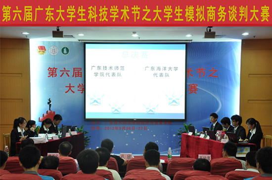 5月26-27日,由共青团广东省委员会、广东省教育厅、广东省科学技术厅、广东省学生联合会联合主办,共青团广东技术师范学院委员会承办的第六届广东大学生科技学术节之大学生模拟商务谈判大赛复赛、半决赛、决赛在我院举行。团省委相关人员、部分高校团委负责人出席比赛现场,进入复赛的8支参赛团队队员及带队老师、指导老师参加比赛现场。