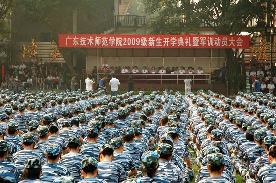 9月13日,广东技术师范学院2009级新生开学典礼在校本部田径运动场上隆重举行。校领导邝邦洪、王乐夫、李月、吕清、潘自勉、林伦伦、林卓、冯灿仪、王培林出席了本次典礼。各有关部、处,二级学院负责同志以及全体新生也参加了本次典礼。典礼由校党委书记邝邦洪主持,校长王乐夫作了重要讲话。