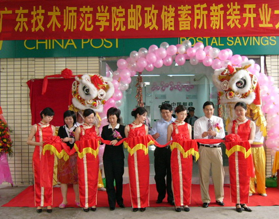 广东技术师范学院邮政储蓄所,经过一个月的装修改造,5月30日正式开业,学院副院长林卓到场祝贺并致词。