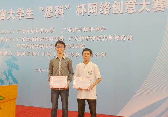为引导大学生“利用网络、改善网络、创新网络”,提倡大学生开发基于网络技术的新应用,引导大学生关注网络技术,鼓励大学生积极创新网络,4月21日,首届广东省“思科杯”大学生网络创意大赛在广东外语外贸大学举办,在我院教务处领导的关心支持下,计算机科学学院积极组织学生参赛,由李军老师指导,张清盛、莫国鸿、邹望泽、刘泽辉、林壮宇等5名同学的作品《互联网络终端监视器》;由江朝勇、韩腊萍、谢丽老师指导,赵超同学的作品《蓝牙点名系统》均获三等奖。
