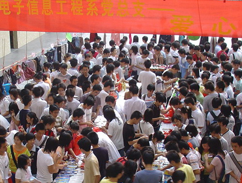 11月11日,一个别开生面的爱心捐助活动学生西区公寓开展,经过电子信息工程系党总支一段时间以来的精心策划,“爱心超市”终于举行了。这次活动以超市的形式提供衣服、文具、生活用品等,凭票进场的贫困生可以免费选取自己需要的物品。本次“爱心超市”中的2000多份物件,大部分来源于该系党员师生的捐赠以及毕业生助困基金的资助。活动当天,“爱心超市”短短两个小时的“营业”收到了很好的效果,现场气氛热烈。