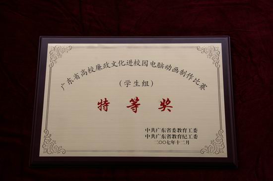 在2007年中共广东省委教育工委、中共广东省教育纪工委举办的以“歌颂清正廉洁,鞭挞贪污腐化”为主题的“广东省高校廉政文化进校园电脑动画制作比赛”活动中,伟德官网纪委推荐一批内容丰富、寓意深刻、具有较强的艺术性、教育性和观赏性的作品参赛,取得了优异成绩。其中,美术学院吴尚志同学制作的作品《手语》荣获学生组特等奖,教育技术与传播学院郑柏兴、刘广安、卢星宇同学制作的作品《明天考试》荣获学生组一等奖,美术学院林锦波同学制作的作品《贪婪之路》荣获学生组三等奖。同时,伟德官网荣获优秀组织奖。(纪委办 谢蔚)