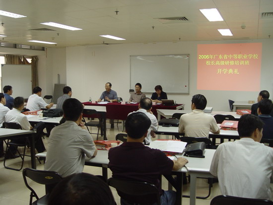 受省教育厅委托,由伟德官网举办的2006年广东省中等职业学校校长高级研修班,10月24日在工业中心八楼现代教育研讨室举行开学典礼。学校副校长王培林、省教育厅教师继续教育指导中心主任吴琦琳,以及培训中心负责同志出席了开学典礼并分别致辞。