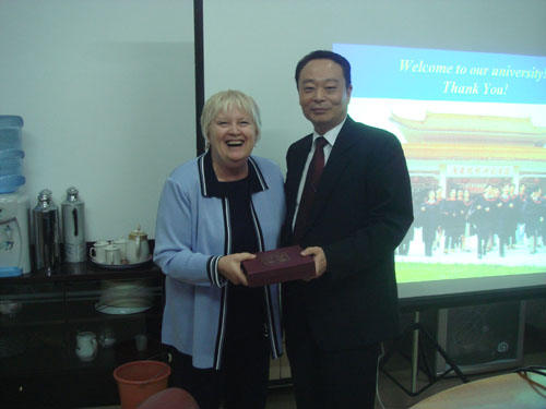 11月1日,王乐夫校长会见了来访的美国Shawnee州立大学校长Rita Rice Morris, Ph.D.。宾主双方分别介绍了学校概况,就高等学校的管理交换了意见,对双方的合作进行了探讨。王乐夫校长向客人赠送了礼品。