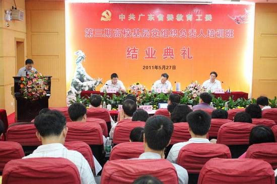 5月27日,广东省委教育工委第三期高校基层党组织负责人培训班结业典礼在我院讲学厅隆重举行。省委教育工委副书记、省教育厅党组副书记景李虎作专题报告,我院党委书记邝邦洪出席了结业典礼并致辞,来自4个培训基地的171名学员参加了结业典礼。结业典礼由省委教育工委组织处处长吴琦琳主持。