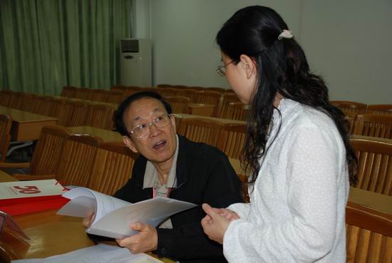 走访活动前,云自厚教授先后到第二教学楼205、502课堂,听取了唐芬芬老师给05应用电师班讲授的《教育学》课程以及秦素菡老师给07广播电视编导班、07教育软件工程班讲授的《中国近代史纲要》课程。图为云自厚教授与唐芬芬老师课后进行交流。(林幸福摄影报道)