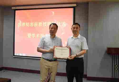郭杰为容淳铭颁发了聘书。郭杰介绍了我院近年的发展,电子与信息学院在科研和学科建设方面所取得的成绩,对容淳铭身在海外心系祖国的情怀表示赞赏。郭杰希望电子与信息学院在容淳铭的加盟下,学科建设更上一个新的台阶。