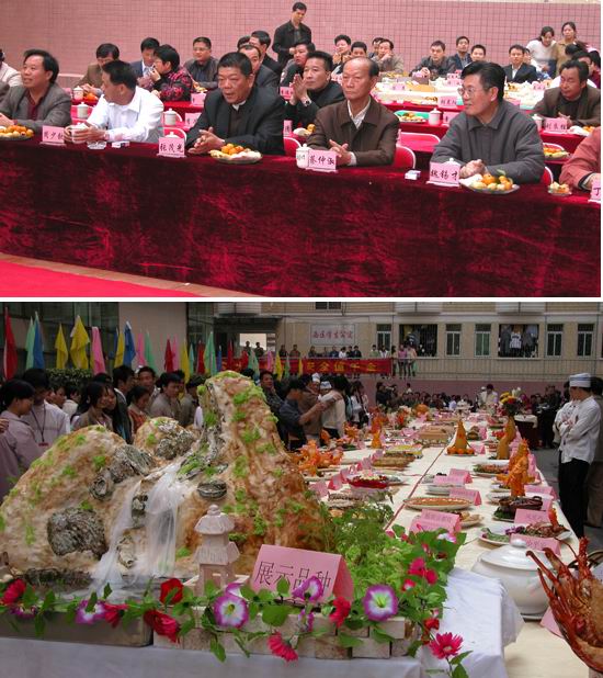 记者在现场看到,60多位选手们各自亮出自己的绝活,蒸、煮、炒、炸,耍杂般的手法和神奇的刀工让现场的观众大开眼界;几十道风格迥异,口味不同的菜肴在桌上一字摆开,造型样式蕴意隽永,极富艺术效果。