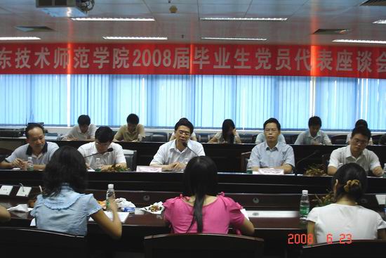 6月23日,学校召开2008届毕业生党员代表座谈会。校党委书记邝邦洪、副书记罗海鸥出席了座谈会,党委组织部、纪委、学生处、团委、教务处有关负责同志和2008届毕业生党员代表共30余人参加了座谈会。