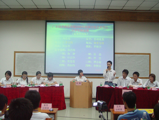 为进一步在广大师生中深入开展“立志、修身、博学、报国”及学习树立社会主义荣辱观的主题教育活动,丰富校园生活,提高我院学生的综合素质。由院团委主办、院学生会承办的2006年大学生辩论赛日前拉开了帷幕。