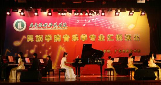 5月20日晚,民族学院音乐学专业汇报演出在学院综合馆三楼隆重举行。学院党政领导邝邦洪、王乐夫、詹步强、林卓、王培林等领导出席并观看了演出。