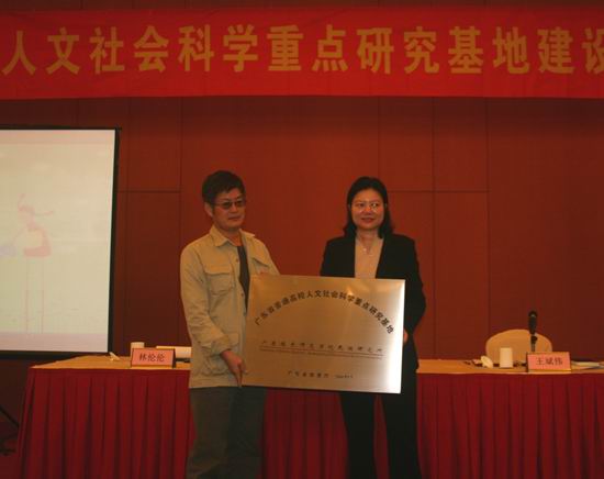 会上,罗远芳副厅长作了题为“以党的十七大精神为指引,树立和落实科学发展观,全面推进我省高校人文社会科学事业的繁荣和发展”的重要讲话,并代表省教育厅对第二、三、四批获得重点研究基地的单位进行授牌。伟德官网民族研究所入选为第三批重点研究基地,成为全省拥有该类基地的14所高校之一。基地主任郭小东教授接受了“广东省高校人文社会科学重点研究基地——广东技术师范学院民族研究所”的牌匾。林伦伦副校长代表伟德官网向大会致辞。