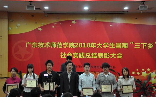 据悉,我院在2010年暑假期间共派出服务队55支,计2000余人,其中3支团队被列为省级重点团队。经过推荐、评审,“清远英德市望埠镇服务队”等6支实践团队荣获“广东技术师范学院2010年大学生暑期‘三下乡’社会实践优秀团队”荣誉称号;吴喜城等104名同学荣获“广东技术师范学院2010年大学生暑期‘三下乡’社会实践积极分子”荣誉称号。(院团委 赵振有)