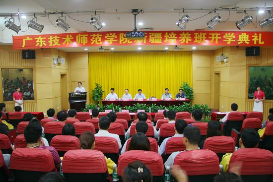 羊城五月,繁花似锦。5月28日上午,广东技术师范学院新疆喀什地区培养班开学典礼在我院讲学厅隆重举行。广东省教育厅副巡视员王玉学,学院党委书记邝邦洪、学院院长王乐夫、学院党委副书记詹步强、学院副院长林卓,各职能部门主要负责人,各二级教学、教辅单位党政负责人,新疆喀什地区伽师县政协副主席李文明、辅导员2人、本次新疆喀什培养班学员141人参加了开学典礼。