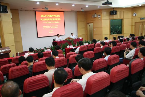 党委书记邝邦洪主持报告会并提出学习贯彻意见。邝书记指出,陈韩晓书记的报告理论联系实际,内容十分丰富,对高校深入学习实践科学发展观,大力推进高校反腐倡廉建设具有很强的针对性和指导意义。邝书记提出三点要求:
