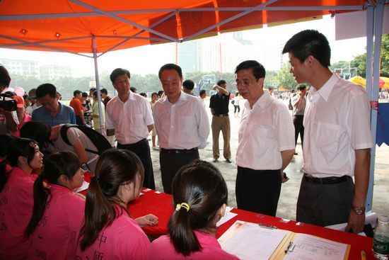 9月9日,是我院2010级新生入学报到日。9号上午,邝邦洪、王乐夫、詹步强、林卓等学院领导在有关部门负责同志陪同下,检查了校本部、西校区、北校区、南校区的迎新工作情况。