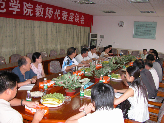9月8日,学院保先办和人事处召开教师代表座谈会。学院党委书记、院长郭斯淦,党委副书记黄晋生与教师代表欢聚一堂,共同庆祝第21个教师节。教师代表肖黎明、梁荣新、项裕荣、李旭旦、张晓林等分别畅谈了自身多年从教的体会,他们为近年来学院事业的快速发展感到欢欣鼓舞,也对当前教育领域中存在的不良现象进行批评。
