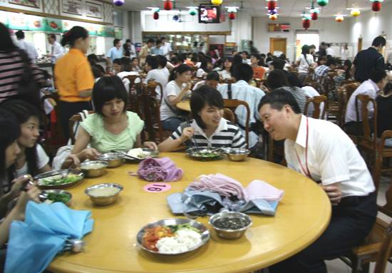 5月19日中午,评估专家组全体成员在学校领导的陪同下,到校本部餐厅春晖园三楼,与师生共进午餐。就餐过程中,专家们与学生们进行了亲切交谈,就就餐环境及饭菜的口味和价格进行交流,专家们还就学习方面的情况与就餐同学进行交谈。(张云报道)