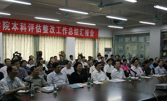 为迎接教育部本科教学工作水平评估的整改验收,全面总结和交流评建整改工作的成效与经验,4月15日,学校在第二教学楼1002会议室召开各二级单位的本科评估整改工作总结汇报会。全体校领导、中层正职干部以及教学单位主管教学的副院长参加了会议。会议由王培林副校长主持。