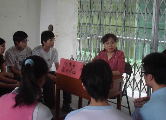电信学院加强对毕业生的就业指导与服务,4月18日下午,在学生西区公寓举行2008届毕业生就业咨询会,为毕业生提供个性化的帮助。