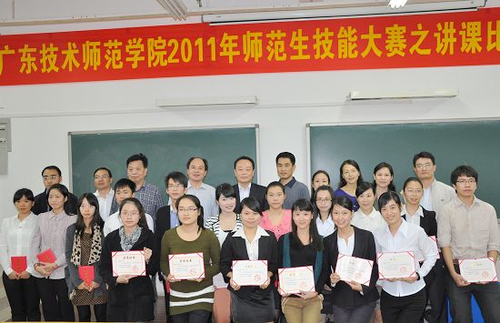 11月25—26日,由学院教务处、团委、职业教育师范技能训练中心主办的2011年师范生技能大赛之讲课比赛决赛在校本部举行。学院院长王乐夫出席开幕式后全程观摩了比赛并为获奖选手颁奖。经过激烈的角逐,杨少芳等6位同学获本次大赛一等奖,张瑜梅等11位同学获二等奖,肖丽红等70位同学获三等奖。