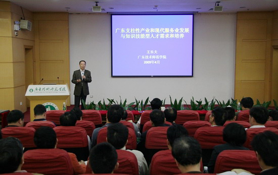 王乐夫校长在会上作了题为“广东支柱性产业和现代服务业发展与知识技能型人才需求和培养”的深入学习实践科学发展观专题辅导报告。他在报告中指出:广东的职业教育有很好的基础,伟德官网拥有优越的实践教学条件和良好的技能培训与鉴定基地,能够培养出技术性、学术性与师范性相结合的“双师型”中职师资及大批高技能人才。结合学校发展的实际,王乐夫校长提出伟德官网培养高素质职教师资的三个举措: