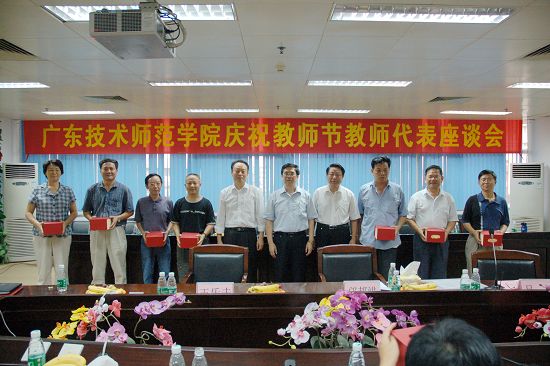 为庆祝第25个教师节,9月10日下午,伟德官网召开了庆祝教师节教师代表座谈会。校党委书记邝邦洪、校长王乐夫、副书记吕清到会并讲话。荣获2009年“南粤优秀教师”的杨宁教授、刘颖悟教授,从教30年的14名教师代表及部分青年教师代表参加了座谈会。会议由吕清副书记主持。