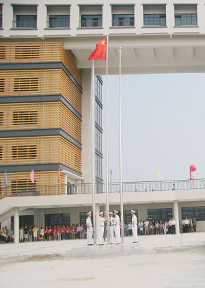 随后,参加典礼的全体师生参加了我院白云校区第一次庄严而隆重的升国旗、奏国歌仪式。在庄严的国歌声中,五星红旗冉冉升起,参加典礼的师生向国旗行注目礼。
