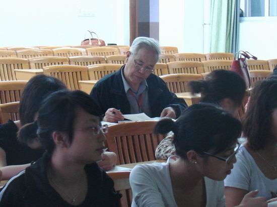 晚上6点50分,评估专家吉多智教授到达第二教学楼505课室,听取了杨芙蓉老师为07音乐班学生教授的《大学语文》课程,并在课后与师生进行亲切交流。(钟健雄 陈东霞摄影报道)