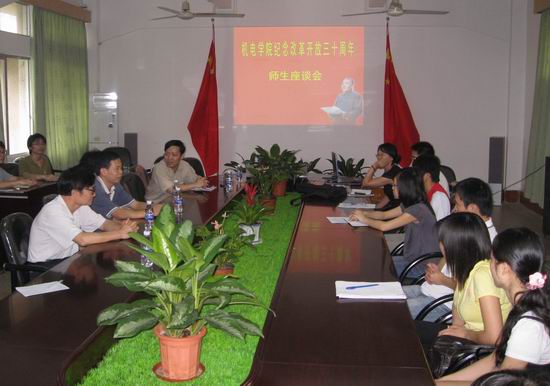 为庆祝改革开放三十周年,使广大青年学生深入了解改革开放的伟大成就,进一步增强民族自尊心、自信心和自豪感,6月3日下午,机电学院举行了“庆祝改革开放三十周年”座谈会。学院党总支、学院关工委小组领导以及部分学生党员、学生干部代表参加了座谈会。
