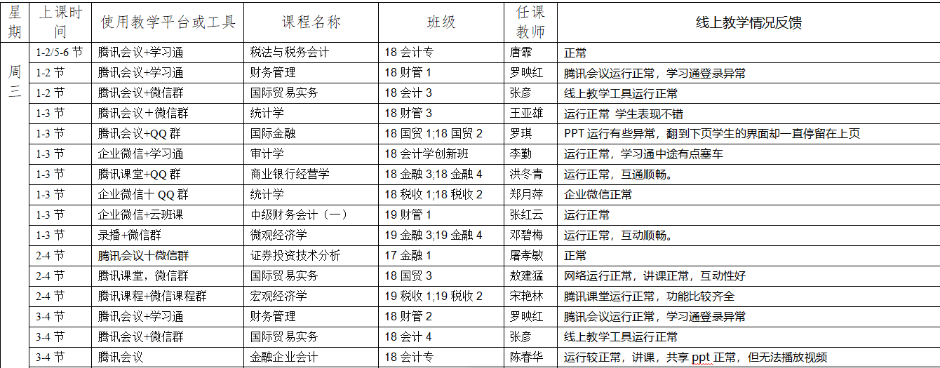 2.各班教学信息员每日课后汇总报告所在班级线上教学情况,学院将汇总的情况当日反馈给各任课教师。