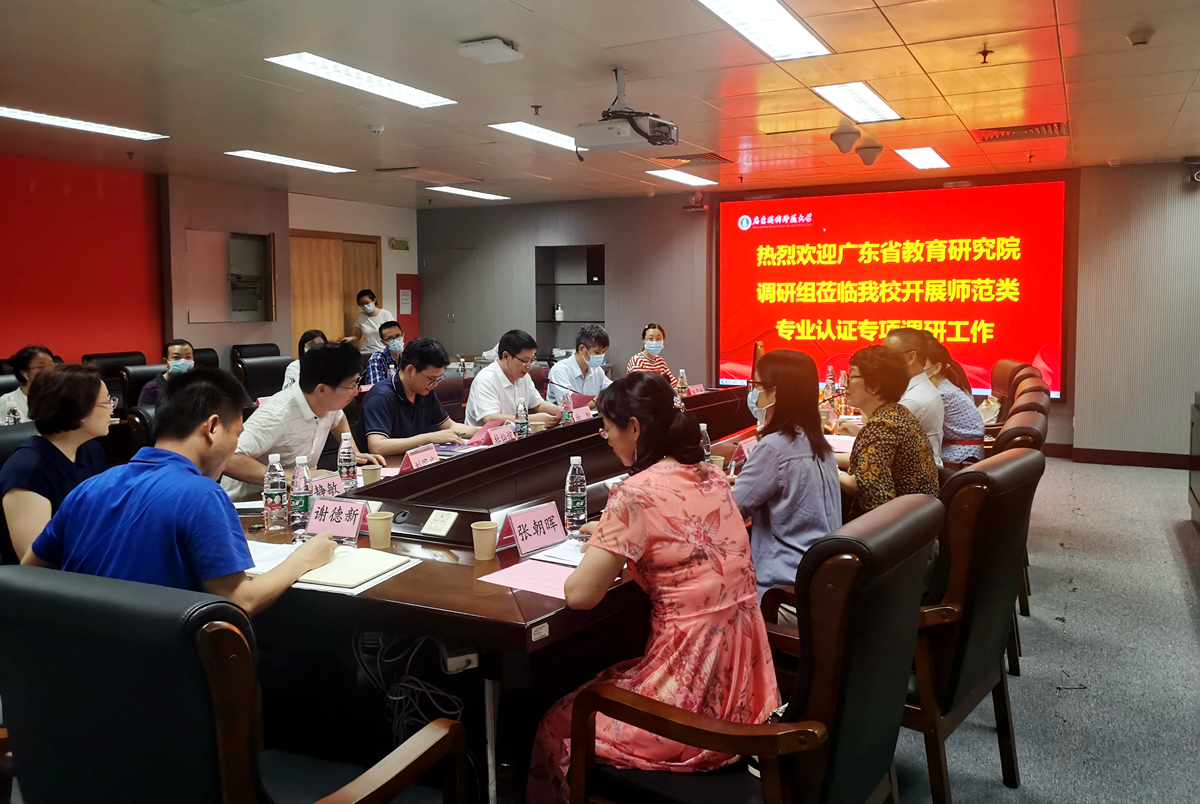 6月6日下午,广东省教育研究院教育评估室主任戚务念一行7人莅临伟德官网开展本科师范类专业认证专题调研。教务处、相关二级学院负责人、师范专业负责人代表与来宾参加了此次调研座谈会。教务处处长向凯主持座谈会。