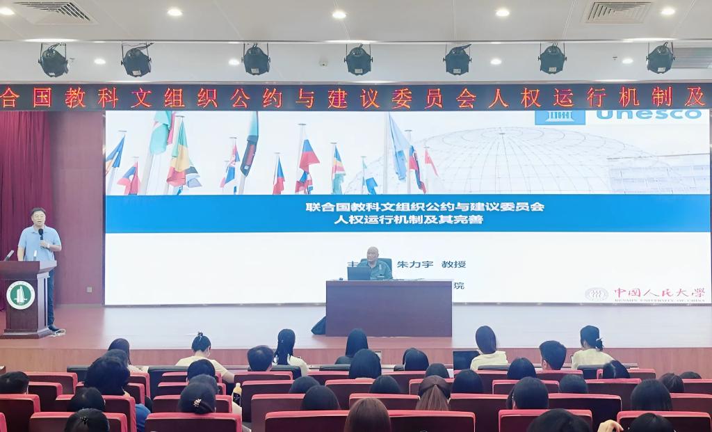朱力宇围绕联合国教科文组织的人权运行机制,系统阐述了:联合国教科文组织的宗旨和机构设置;公约与建议委员会的组成、成立过程、性质及职权;公约与建议委员会行使第一项职权及其审议程序;公约与建议委员会行使第二项职权及其审议程序;公约与建议委员会审议机制存在的若干问题;中国在教科文组织中的影响力及话语权建设。朱力宇还结合自身丰富经历,通过案例详细介绍了中国代表如何灵活运用相关法律法规,坚决捍卫国家立场,生动展现了中国在国际人权事务中的智慧与担当,彰显了中国在国际舞台上的坚定姿态和理性力量。