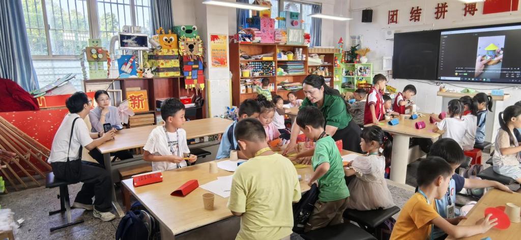 在临江镇长安小学,江友群校长向调研团队详细介绍了学校的办学现状与发展挑战。帮扶团队同样通过课堂观摩、座谈交流与实地走访,全面了解了学校在美育教学、师资结构、课程资源等方面的实际状况。针对两所学校共同存在的音乐、美术等美育师资相对薄弱的问题,帮扶团队与校方深入探讨了广师大在校生以课程支持、课后服务、社团指导、美育实践等多种形式开展帮扶的可行路径,旨在将高校的优质美育资源有效下沉至一线课堂。