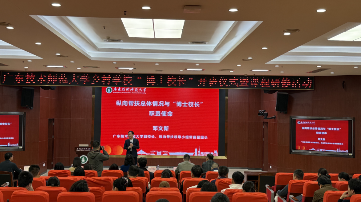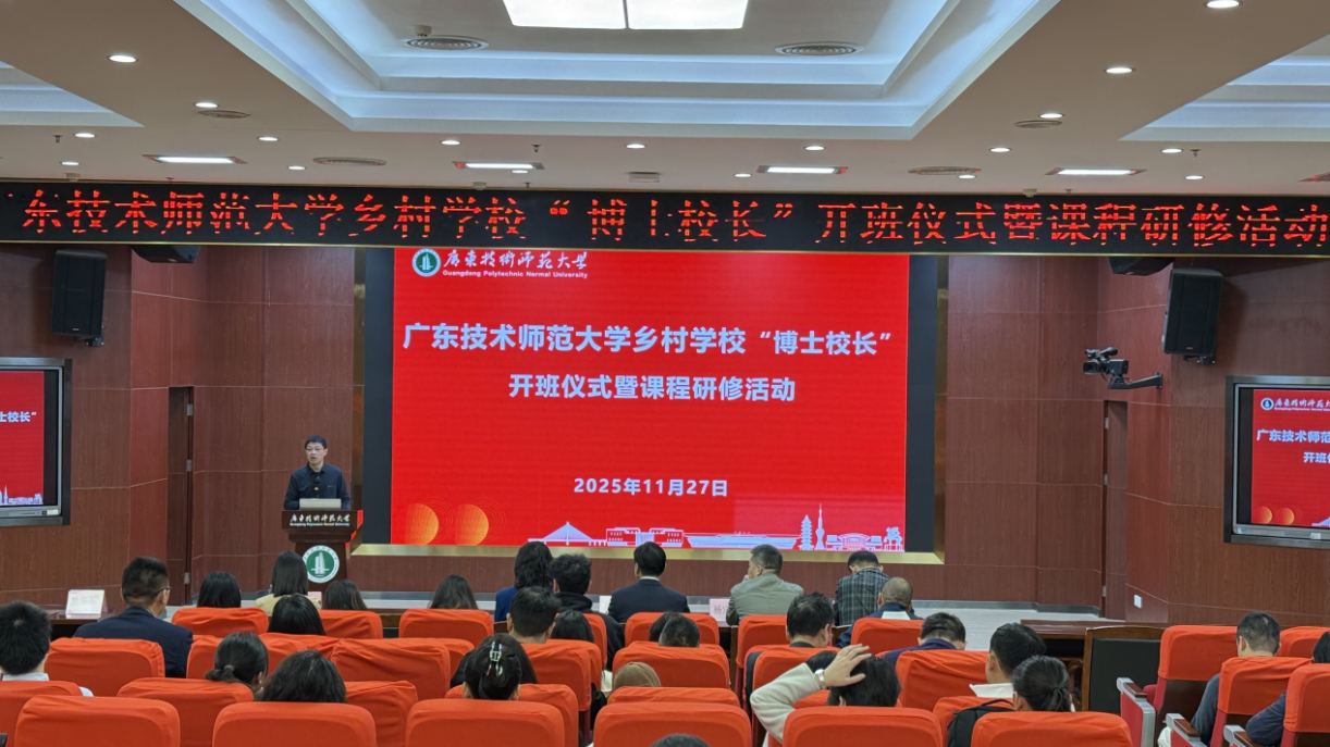 副校长邓文新在开班致辞中系统阐述了“博士校长”计划的战略意义。他指出,该计划源于帮扶团队的“三重回响”:响应国家乡村振兴战略的时代强音,落实广东省“百千万工程”和教育厅纵向帮扶工作的坚定步伐,以及广师大作为师范大学打造基础教育理论研究与实践创新高地的必然担当。计划将分三批开展系统培训,首轮邀请优秀一线校长分享经验,第二轮与省教育厅合作遴选优秀校长交流,第三轮以人工智能为基础,引导博士校长开展数智化课改和教改。邓文新副校长在培训中,用亲身经历及广师大发展历史与实践,告诉即将赴任的“博士校长”,一是要提高站位,二是要抓主要矛盾,三是抓落实落地,充分发挥博士资源优势和专业学科优势,助力乡村学校教育高质量发展。
