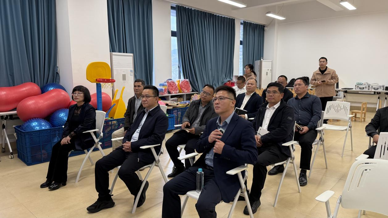 座谈交流环节,熊华军院长首先介绍了广师大纵向帮扶G-STAR模式分别围绕“九个数”进行开展教育帮扶。双方就数智技术赋能心理健康教育、低空经济科技教育研学等议题展开深入讨论。东源县委副书记陈甫逸飞对广师大基础教育学院在AI心育工程中心、低空经济研学基地的创新探索与实践成果予以高度评价。东源县教育工委书记、教育局党组书记、局长曾宪奕提出希望建立广师大东源教育集团的建议。各个学校领导负责人则表示了对广师大数智心育模式精准赋能中小学心理健康教育的迫切需求,期待开启低空经济研学协调联动与深度合作。