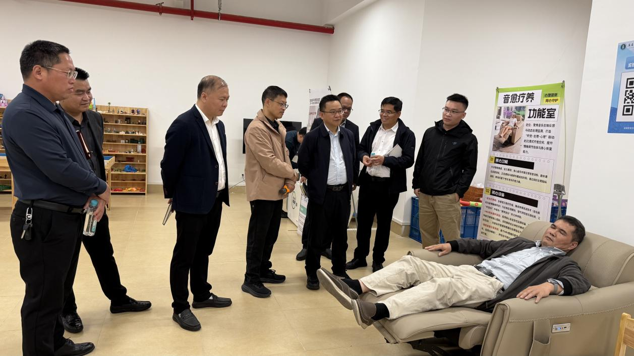 实地参观环节,AI心育工程中心负责人一一介绍、展示了其核心建设成果——“五维一体”数智化身心素养培育场域,熊华军院长进一步阐述了基地以数智技术驱动、深度服务河源青少年身心素养培育的战略定位与实施路径。AI心育工程中心创新性地融合了科普、教学、测评、咨询与共育五大功能,构建了全链条、交互式的心理健康服务新模式。嘉宾们现场观摩并体验了智能脑环测评系统、VR行为矫正仪器等前沿数智化设备,切身感受了现代科技对心理健康测评、干预和积极心态培养的精准赋能。
