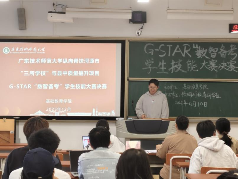 为深入落实《广东省师范(教师教育)院校纵向帮扶欠发达地区“三所学校”和县中质量提升工作方案(2024-2027年)》精神,推进伟德官网对河源市相关学校的纵向帮扶与质量提升工作,推动“人工智能+教育”在基础教育领域的创新应用,同时深化小学教育专业本科生对“数智测评”的理解与实践能力,基础教育学院近期举办G-STAR“数智备考”学生技能大赛。大赛旨在以赛促学,提升学生运用智能技术赋能教学实践的能力。