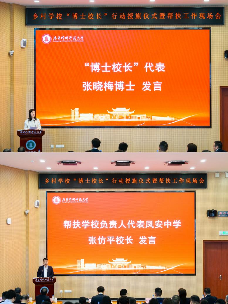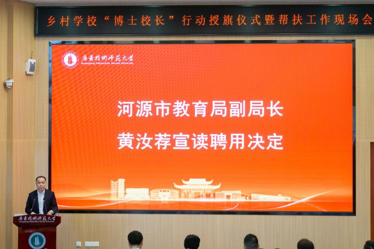 会上,河源市教育局副局长黄汝荐宣读了“博士校长”聘用决定。紫金县凤安中学校长张仿平作为受援学校代表发言,表达了对“博士校长”的期待与感谢。博士校长代表张晓梅分享了她在河源开展数字化课改的实践经历,表示将继续扎根乡村、服务一线。