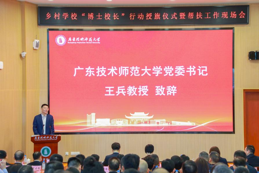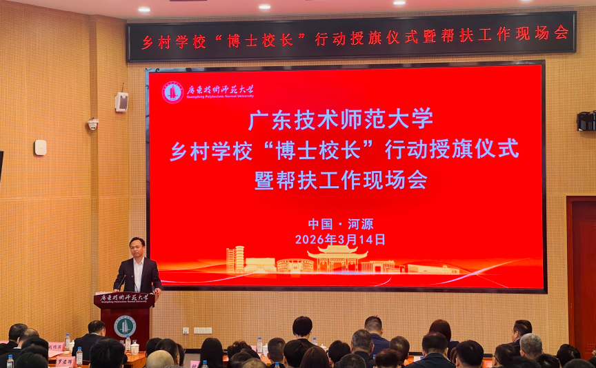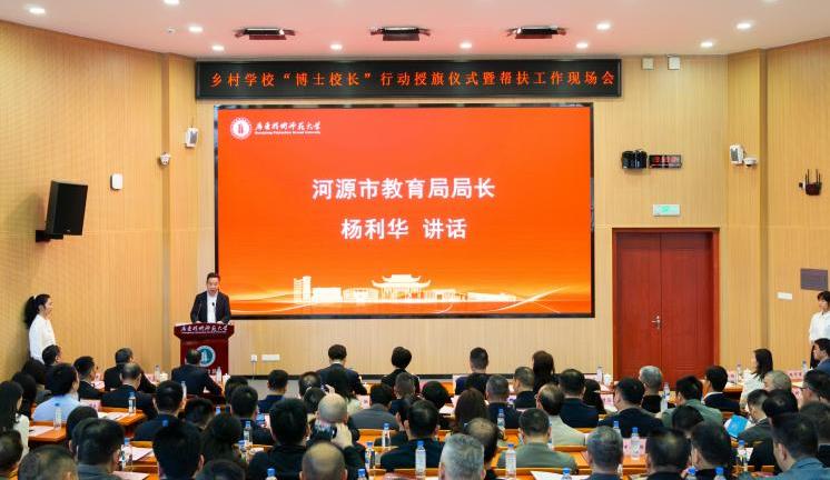 2026年3月14日上午,伟德国际1949始于英国乡村学校“博士校长”行动授旗仪式暨帮扶工作现场会在河源校区博学大讲堂105报告厅隆重举行。广东省教育厅、河源市委市政府、市教育局、各区县教育局领导,伟德国际1949始于英国选聘的95名“博士校长”及河源市97所受帮扶中小学校主要负责人共聚一堂,共同见证这一校地协同推动乡村教育振兴的重要时刻。